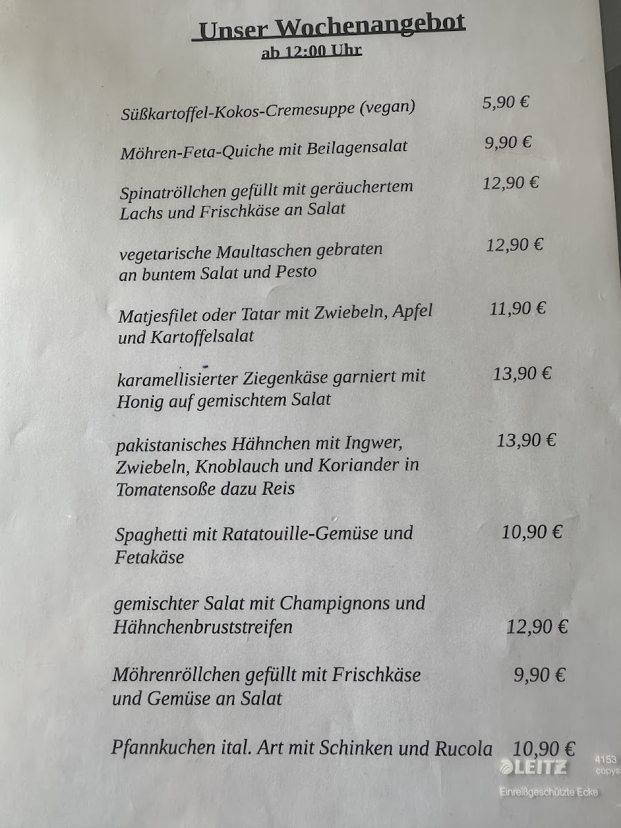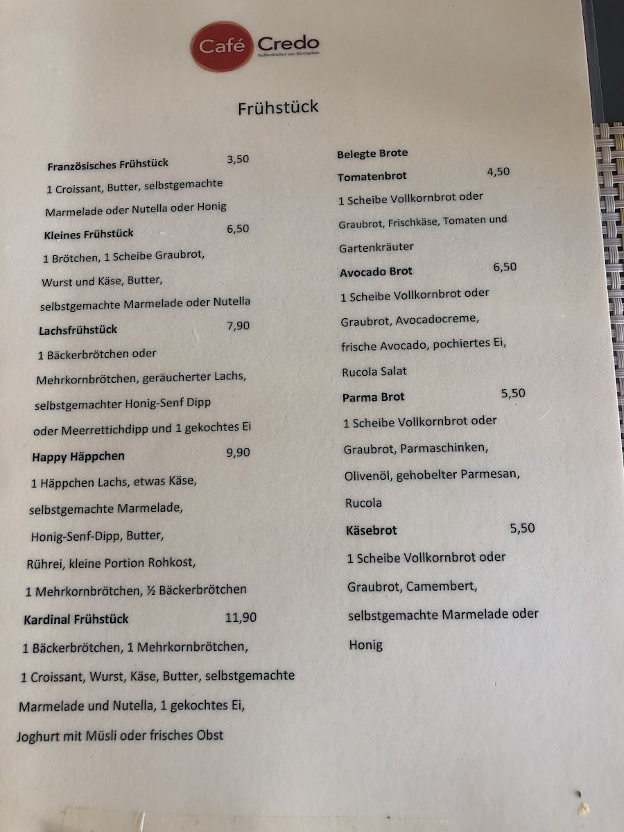 Cafe Credo, Bibliotheksforum St. Johann Baptist Menu